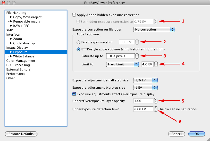 FastRawViewer 1.3.5. Exposure Display Tab