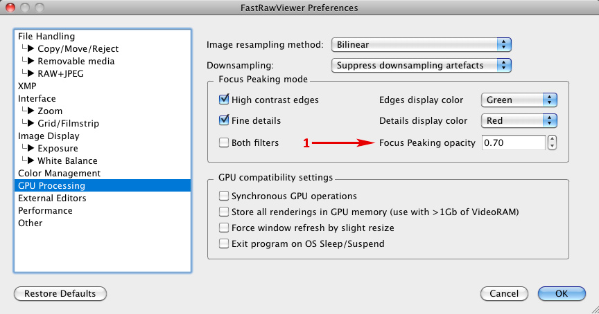 FastRawViewer 1.3.5. GPU Processing Tab