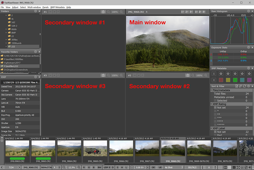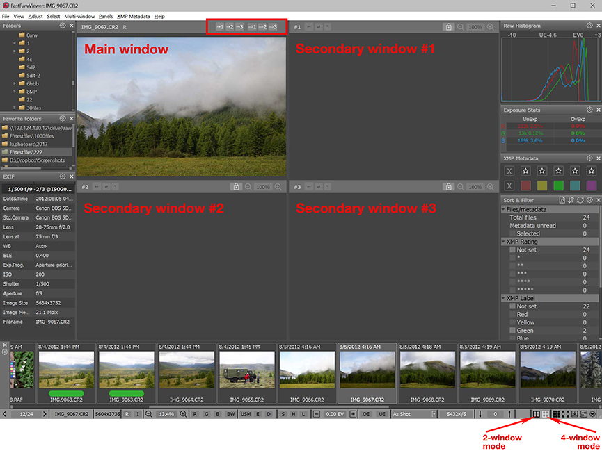 FastRawViewer 2.0. Multi-window mode. Default order of the windows. Start