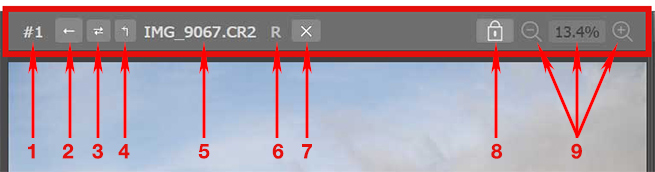 8. Padlock – zoom/pan status; when the padlock is closed, zoom and pan are synchronized across the main window and all of the secondary windows. When it’s open, each window can be zoomed/panned independently.