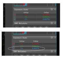 You may tune Exposure Stats panel via 'gear' menu (on the panel heading), Panel size->Dynamic Resize (or 4 lines) will probably fix the issue.
