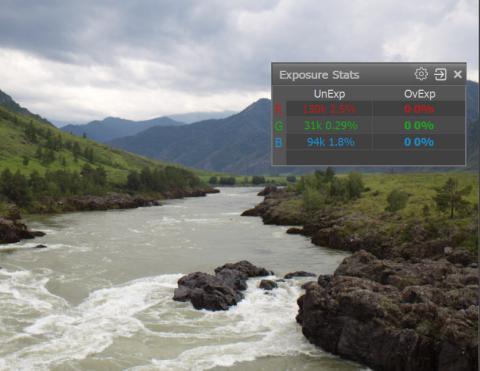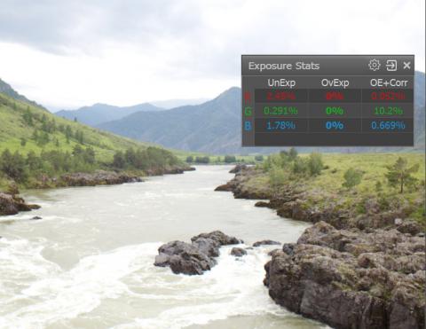 For RAW data, the exposure statistics are calculated for each channel. These statistics are displayed in the Exposure stats panel, which by default is located in the right side of the program window.