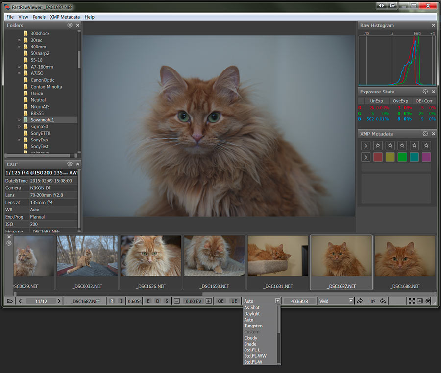 For the majority of modern cameras, FastRawViewer contains a large amount of standard presets (settings) of white balance.